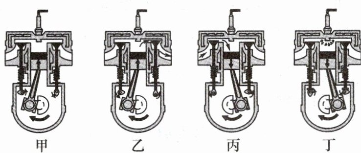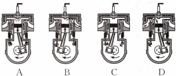 3. 如图所示为汽油机工作时各冲程的示意图,请按要求填空。