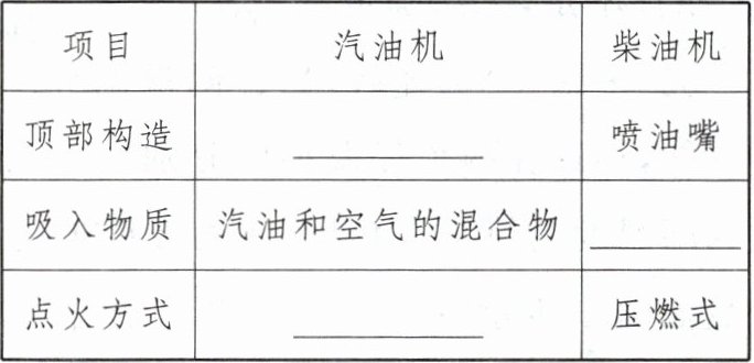 4. 将下表中汽油机和柴油机的不同点填写完整。