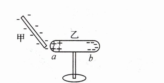 15. 如图所示,当一个带负电的物体甲靠近不带电的金属导体乙时,乙的 a 端会带正电、b 端会带负电。