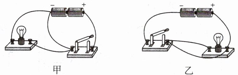 17. 图甲、乙中,各有一根导线接错而使小灯泡被短接,请把这根导线找出来,在上面打一个“×”。