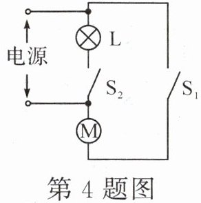 4. 如图是电冰箱的简化电路图,M 是电冰箱压缩机内的电动机,L 是电冰箱内的照明灯。下列判断正确的是(
