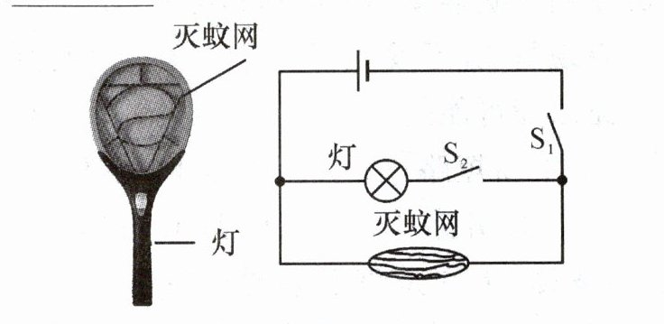 闭合时,只有灭蚊网通电起到灭蚊作用;当开关S₁和S₂