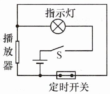 12. 如图所示是一种定时播放课间音乐的装置的原理图。闭合开关 S,当“定时开关”处于闭合状态时,指示灯