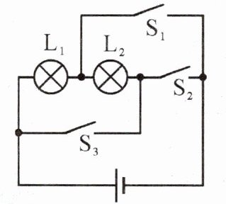 时,$ L_1 $和 $ L_2 $串联;当只闭合开关S₁、S₃