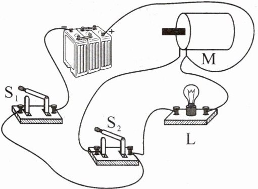 D.同时闭合 $ S_1 $、$ S_2 $,灯泡 L 和电动机 M 并联