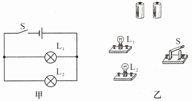 2. 请按电路图甲,用笔画线代替导线把如图乙所示的实物连起来。