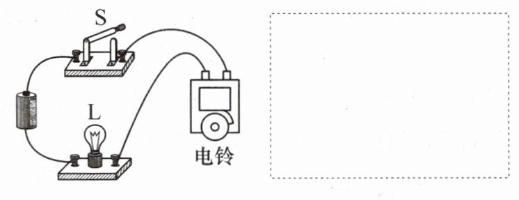 6. 根据实物图,在虚线框内画出对应的电路图。(电铃用符号“$\overset{\frown}{}$”表示)