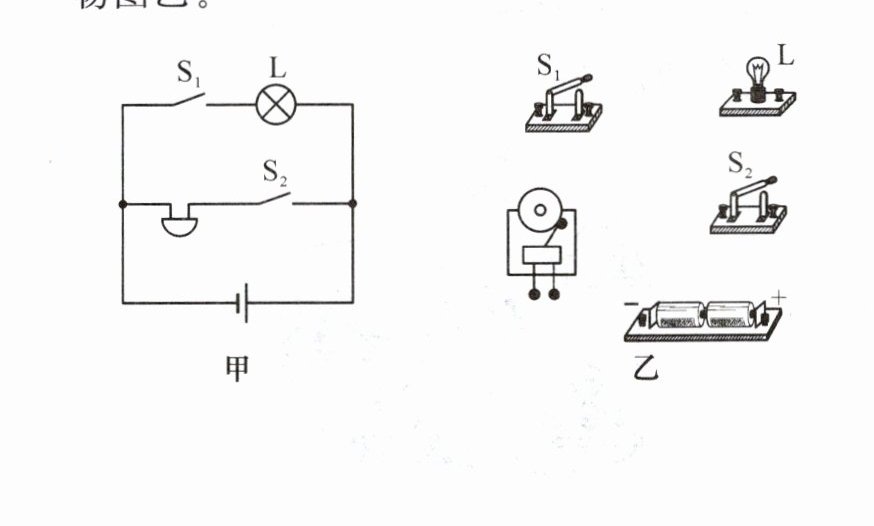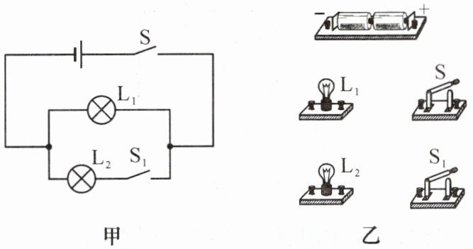 4. 根据电路图甲,请用笔画线代替导线连接实物图乙。