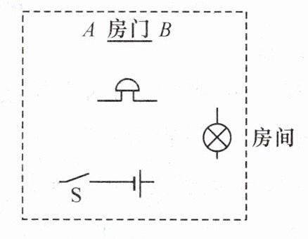 11. “创新”实验小组的同学要设计一个自动防盗报警电路。要求:晚间开关 S 闭合后,灯亮、电铃不响;当房门被打开时,细导线 AB 被扯断,灯亮且电铃发声自动报警。请按要求用直线连接如图所示的电路元件。