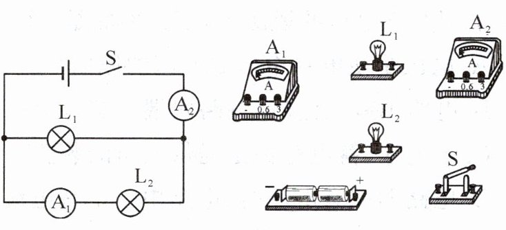 11. 根据电路图连接对应的实物图。(电流表量程选择 $0\sim0.6A$)