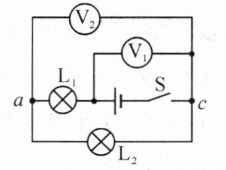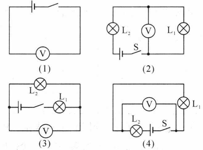 【例】在横线上写出下列电路图中,开关闭合后电压表的测量对象。(填“电源电压”“L₁两端的电压”或“L₂两端的电压”)