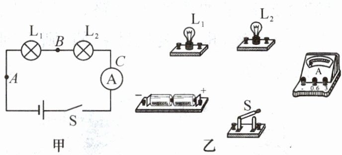 1. 如图甲是小名同学探究“串联电路中电流的特点”的实验电路图,图乙是所给的实验器材。