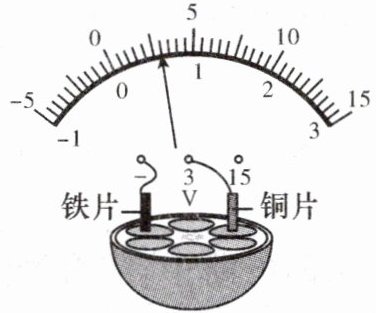 (填“铁片”或“铜片”)。(3)为获得更高的电压,可以将多个水果电池