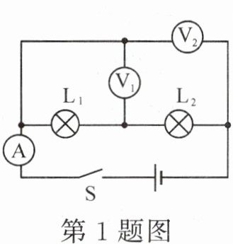 1. 如图所示的电路中,灯泡 $ L_1 $ 和灯泡 $ L_2