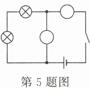 5. 在如图所示电路图中的两个“$ ◯ $”中填入电压表或电流表的符号,使两个小灯泡串联。