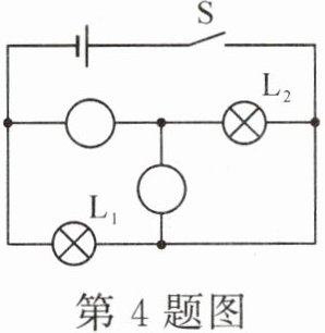 4. 请在如图所示电路图的两个“$ ◯ $”中填入电压表或电流表的符号,使两个小灯泡并联。