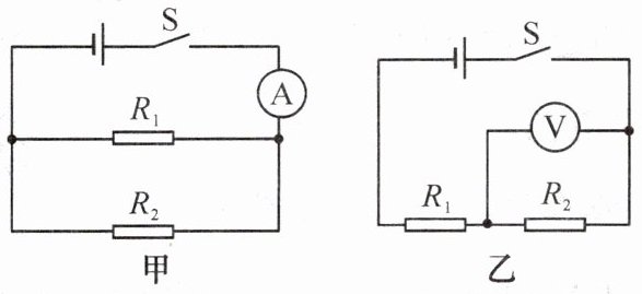 11. (2023·绥化)定值电阻$R_1$和$R_2$并联在如图甲所示电路中,电流表的示数为$0.5\ A$,通过$R_1$的电流为$0.3\ A$,则通过$R_2$的电流为