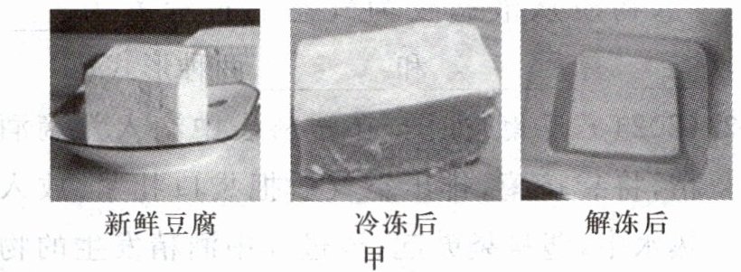 (1)小芳小组制作“冻豆腐”,制作过程如图甲所示。他们发现,新鲜豆腐冷冻后体积变大,原因是豆腐里面的水