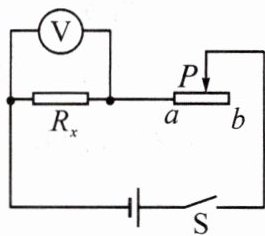4.某物理实验小组正在学习测量未知电阻$R_{x}$的阻值,实验中电流表突然损坏,小组同学经过讨论设计了一种实验方案,也可测出$R_{x}$的阻值。电路如图所示,电源电压未知且恒定不变,$a$、$b$为滑动变阻器左右两个端点,滑动变阻器最大阻值已知且为$R_{max}$,请你把以下测量步骤补充完整。