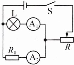 (1)闭合开关$S$,调节滑动变阻器的滑片,使电流表$A_{2}$的示数为