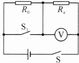 2.在“伏安法”测电阻的实验中,只有一个电压表和一个已知阻值的定值电阻$R_{0}$,小明设计了如图所示的电路,同样可以测量未知电阻$R_{x}$的阻值,请将实验步骤补充完整。