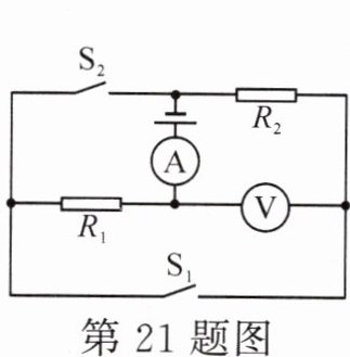 21. 如图所示,电源电压保持不变。只闭合开关 $ S_{1} $,电流表和电压表均有示数,若再闭合开关 $ S_{2} $,则下列说法正确的是 (