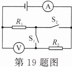 19. 如图所示,电源电压保持不变,$ R_{1} $ 和 $ R_{2} $ 为定值电阻,先闭合开关 $ S_{1} $,然后再闭合开关 $ S_{2} $,关于开关 $ S_{2} $ 闭合前后电流表和电压表示数的变化,下列判断正确的是 (