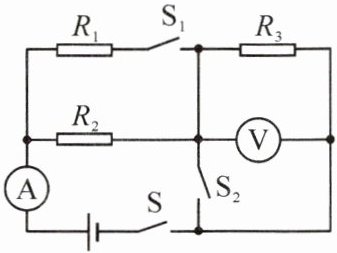 (1)当开关S闭合、S₁、S₂断开时,电阻R₂、R₃串联,电流表测电路中的电流,电压表测电阻R₃两端的电压,此时电路中的总电阻: