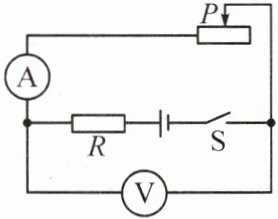 6. 如图所示电路中,电源电压恒定,定值电阻$R$的阻值为$10\ \Omega$,闭合开关后,将滑动变阻器的滑片从某个位置向右滑动一段距离,使变阻器阻值增加了$5\ \Omega$,电流表示数减少了$0.08\ A$,则电压表示数的变化是(