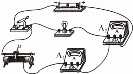 4. (2024·济南)某学习小组连接了如图所示的实物电路,闭合开关,移动滑片$P$的过程中,关于电流表$A_{1}$的示数$I_{1}$、电流表$A_{2}$的示数$I_{2}$以及灯泡的亮度,可能出现的现象是(
