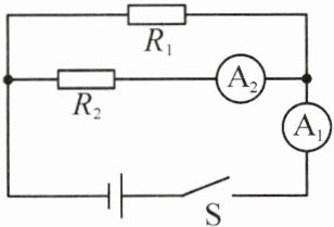 5. 电源电压保持不变,当定值电阻$R_{1}$和$R_{2}$串联接入电路时,它们两端的电压之比为$2:1$;如图所示,当电阻$R_{1}$和$R_{2}$并联接入该电路时,闭合开关,电流表$A_{2}$的示数为$0.6\ A$。已知电阻$R_{1}=20\ \Omega$。下列分析正确的是(