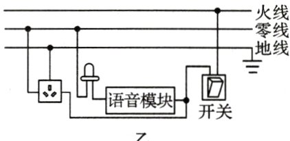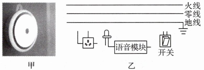8. (2024·郑州经开区期末)如图甲所示是一款智能语音控制小夜灯,且带有插座,小夜灯自带语音模块;小夜灯和三孔插座由开关控制,并且可以独立工作。请用笔画线代替导线将该夜灯接入家庭电路中。