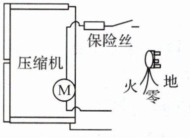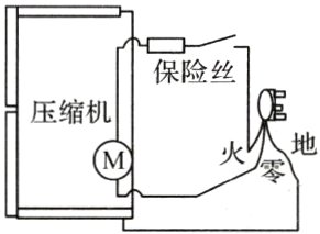 5. 如图所示是电冰箱的简化电路图,请将图中的三条线按照安全用电的原则连接到插头上。