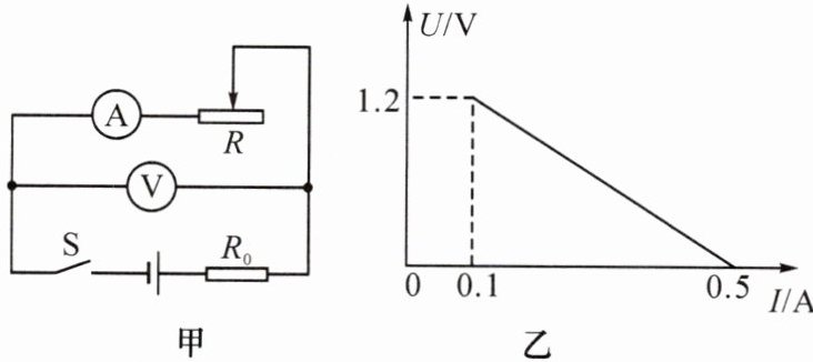 9. (2024·临沂)闭合如图甲所示电路的开关,将滑动变阻器的滑片由最右端移到最左端的过程中,电压表与电流表的示数变化的图像如图乙所示。则定值电阻R₀的阻值为