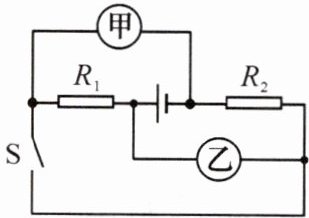 10. (2023·齐齐哈尔)如图所示,已知R₁ : R₂ = 2 : 1。当开关S闭合,甲、乙两表均为电压表时,两表示数之比U₍甲₎ : U₍乙₎ =