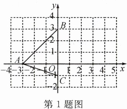1. 如图,在平面直角坐标系中,三角形ABC的顶点坐标分别为A(-3,0),B(0,3),C(0,-1),则三角形ABC的面积为