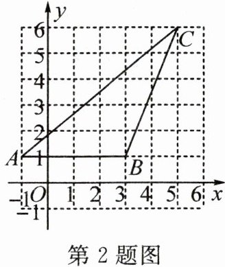 2. 如图,三角形ABC三个顶点的坐标分别为A(-1,1),B(3,1),C(5,6),则三角形ABC的面积为