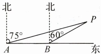 ∵ ∠PAB = 90°- 75°= 15°,∠PBC = 90°- 60°= 30°,∠PBC = ∠PAB + ∠APB,