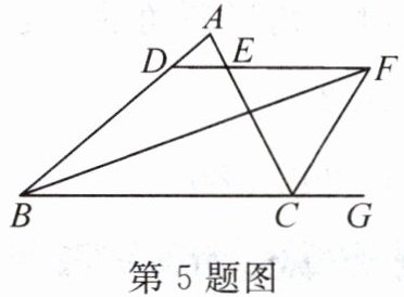 5. 如图,∠ABC 的平分线 BF 与△ABC 的外角∠ACG 的平分线相交于点 F,过点 F 作 DF//BC 交 AB 于点 D,交 AC 于点 E.若 BD=7 cm,CE=5 cm,则 DE 的长为