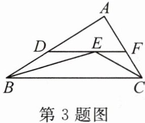 3. (2024·芜湖无为市期末)如图,在△ABC 中,BE,CE 分别是∠ABC 和∠ACB 的平分线,过点 E 作 DF//BC 交 AB 于点 D,交 AC 于点 F.若 AB=6,AC=4,则△ADF 的周长为