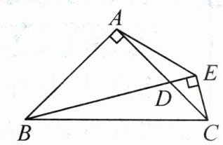 5. 如图,$ △ABC $为等腰直角三角形,$ ∠BAC = 90^{\circ} $,$ AB = AC $,D 是 AC 上一点. 若 $ CE ⊥ BD $于点 E,连接 AE. 求证:$ ∠AEB = 45^{\circ} $.