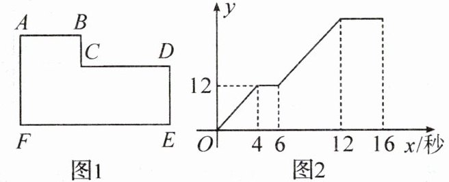 9. 如图1(图中各角均为直角),动点 $ P $ 从点 $ A $ 出发,以每秒1个单位长度的速度沿 $ A \to B \to C \to D \to E $ 路线匀速运动,$ \triangle AFP $ 的面积 $ y $ 与点 $ P $ 运动的时间 $ x $ (秒)之间的函数关系图象如图2所示,下列说法正确的是(