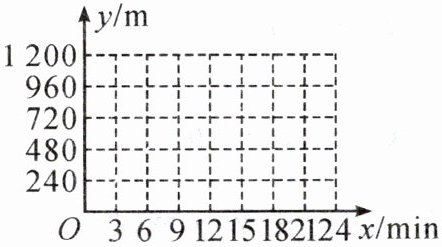 (3)小慧去文具店的速度为$\frac{960}{12}=80(m/min)。$$\frac{720}{80}=9(min);$小慧返回家中的速度为$\frac{960}{21 - 15}=160(m/min)。$$15+\frac{960 - 720}{160}=16.5(min)。$答:小慧从家出发后9min或16.5min离家距离为720m。