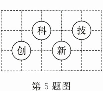 5. (2024·贵州)为培养青少年的科学态度和科学思维,某校创建了“科技创新”社团.小红将“科”“技”“创”“新”写在如图所示的方格纸中,若建立平面直角坐标系,使“创”“新”的坐标分别为$(-2,0),(0,0)$,则“技”所在的象限为(