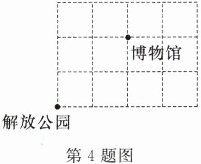 4. 如图,每个小正方形网格的边长表示1个单位长度.若以解放公园为原点建立平面直角坐标系,则博物馆的坐标为(