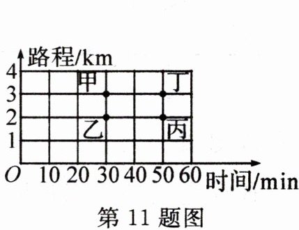 11. (2022·安徽)甲、乙、丙、丁四个人步行的路程和所用的时间如图所示,按平均速度计算,走得最快的是 (