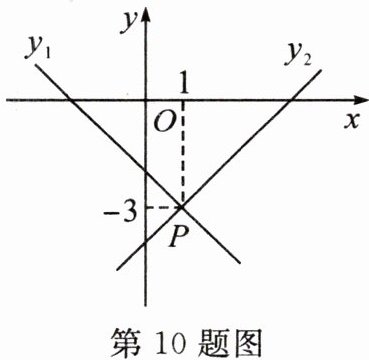 10. (2024·合肥42中期中)如图,在平面直角坐标系中,若直线 $ y _ { 1 } = - x + a $ 与直线 $ y _ { 2 } = b x - 4 $ 相交于点 $ P $,则下列结论错误的是 (