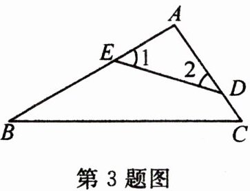 3. 如图,点 $E$,$D$ 分别在 $AB$,$AC$ 上。若 $\angle B = 30^{\circ}$,$\angle C = 55^{\circ}$,则 $\angle 1+\angle 2 =$(