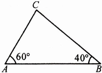 1. 如图,在 $\triangle ABC$ 中,$\angle A = 60^{\circ}$,$\angle B = 40^{\circ}$,则 $\angle C =$(