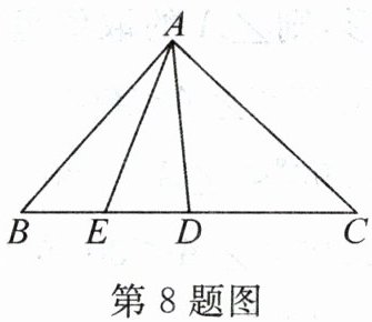 8. 如图,AD是△ABC的中线,AE是△ABD的中线。若DE=3 cm,则EC=